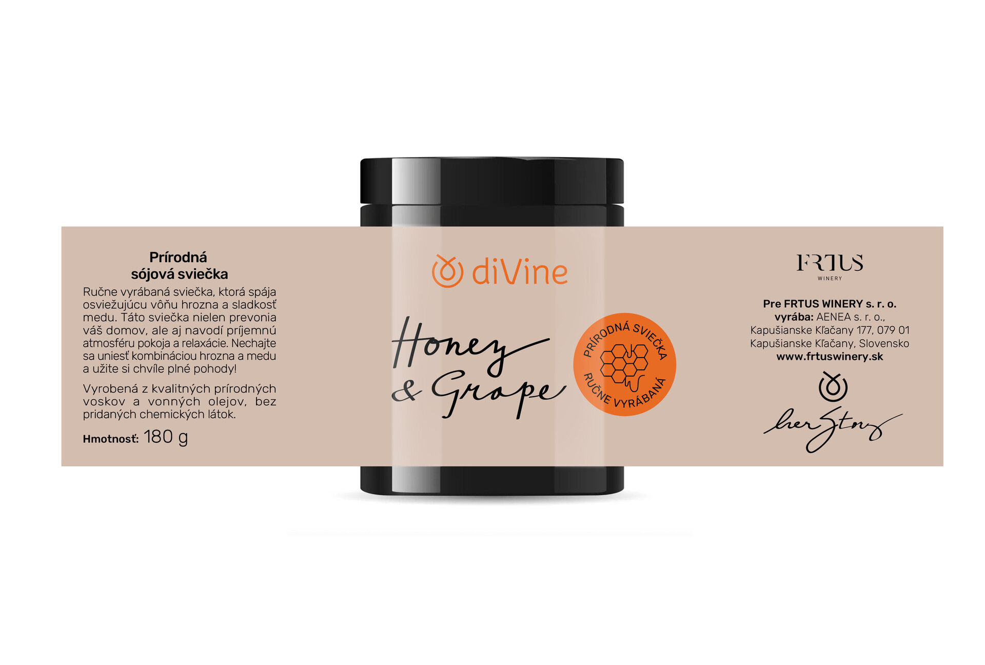 Značka DiVine vyrába prírodnú kozmetiku v spolupráci vinárstvom FRTUS. Základ ich kozmetiky a príprdných sviečok je hroznový olej a med z vlastnej produkcie.